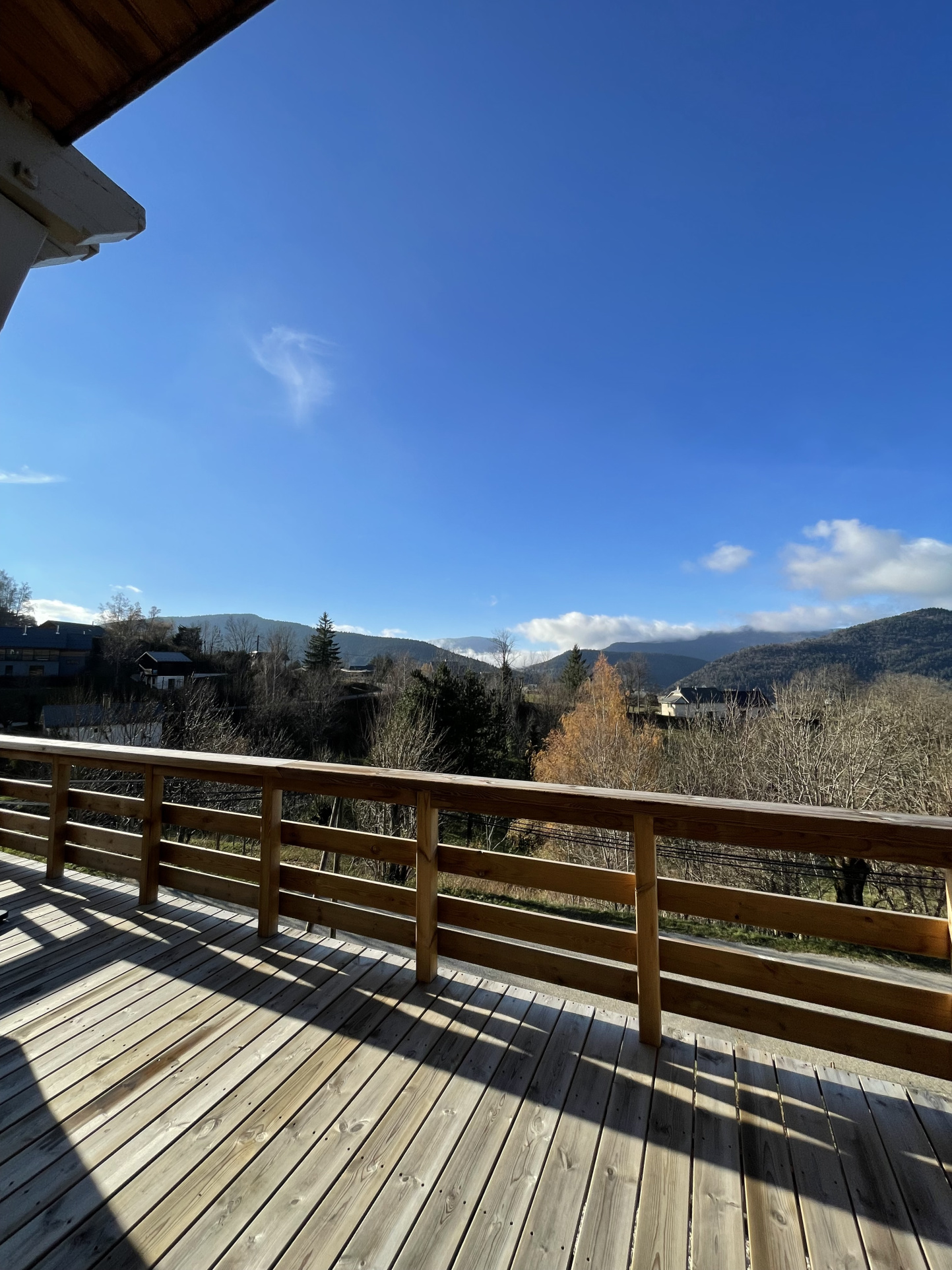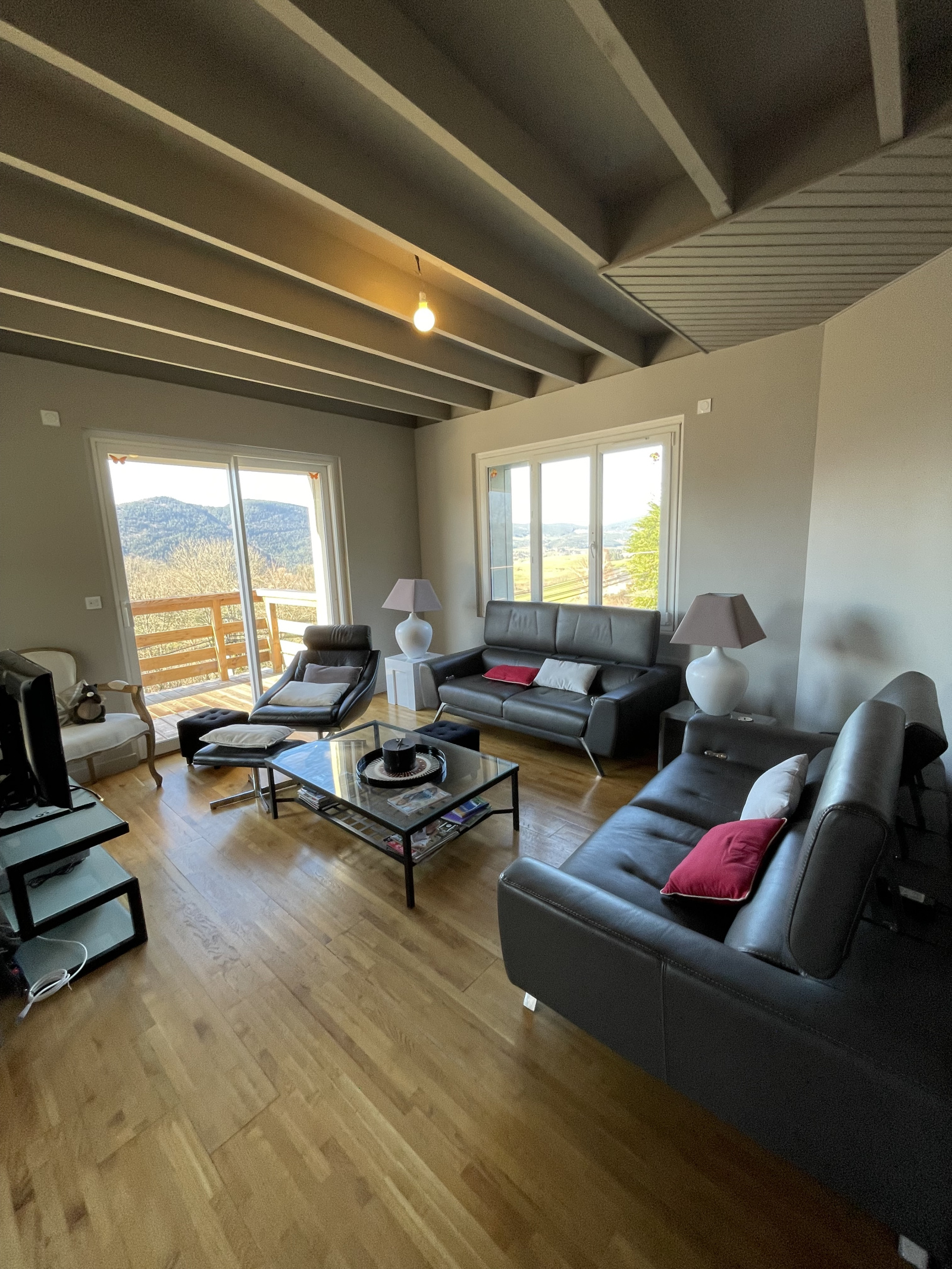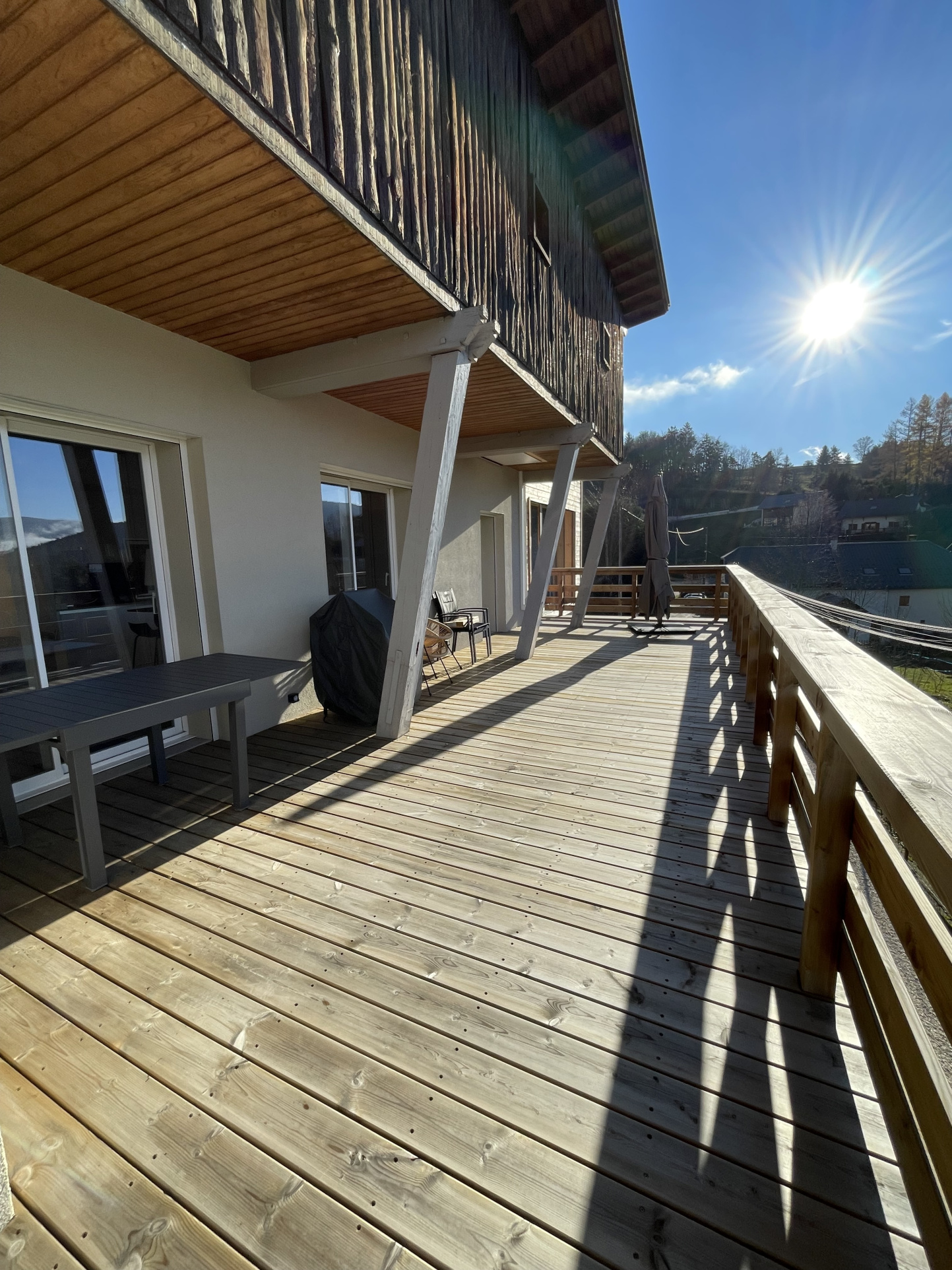 Cette maison orientée vers l’extérieur donne sur une grande terrasse-balcon exposée sud-ouest avec une vue panoramique. Le cadre est très agréable.