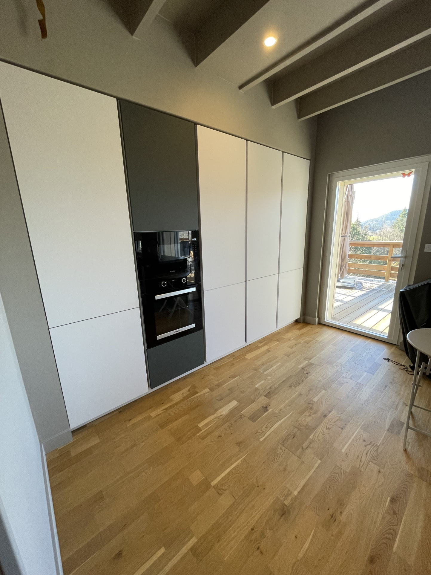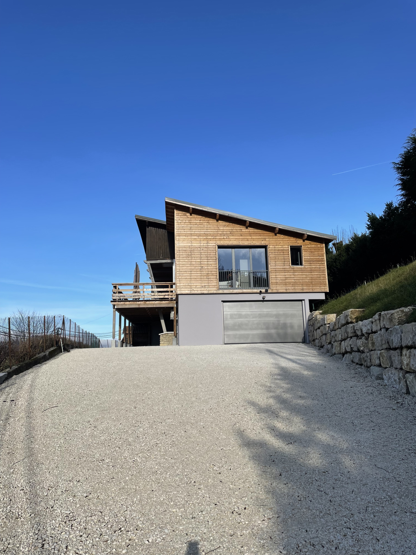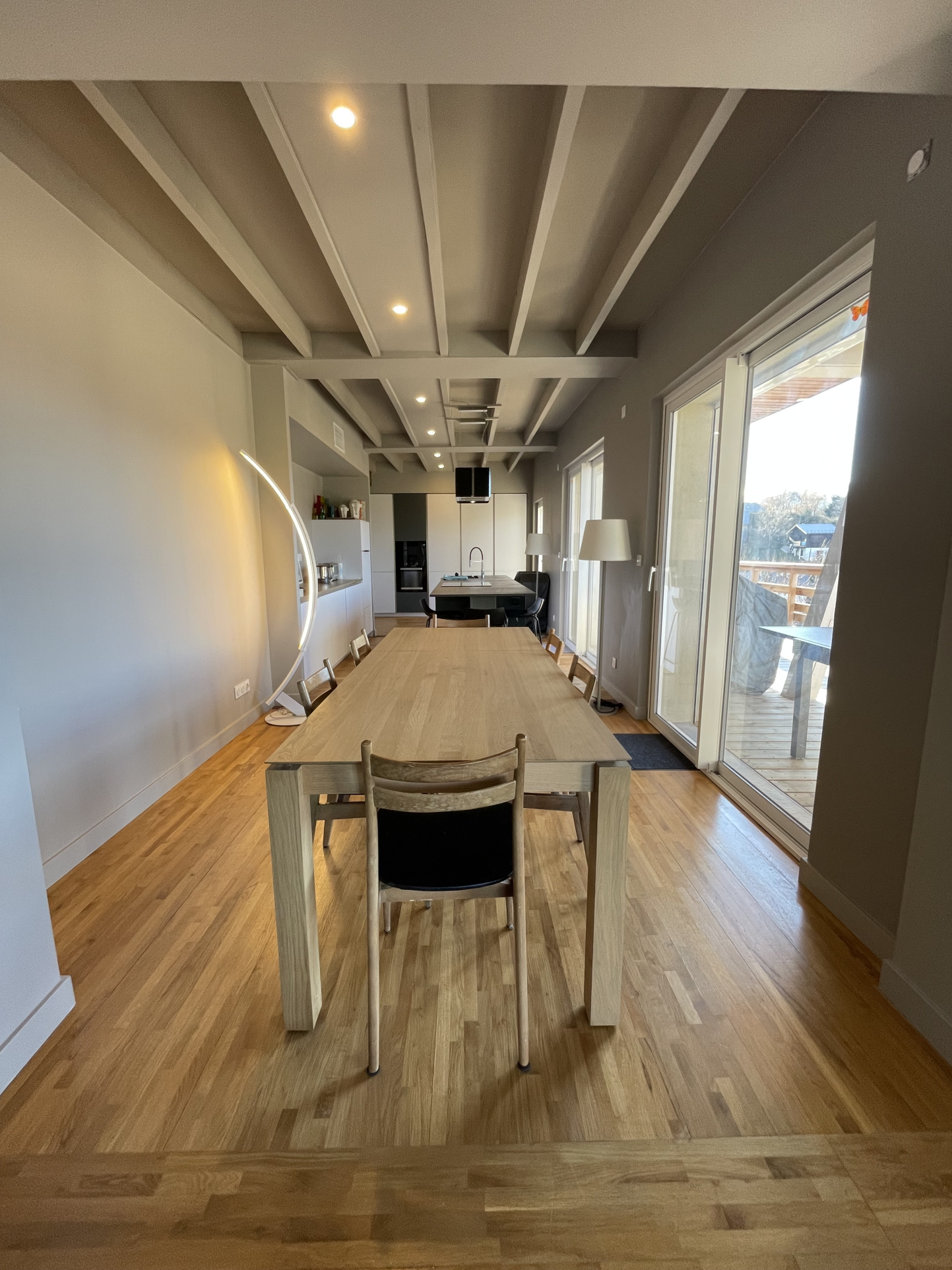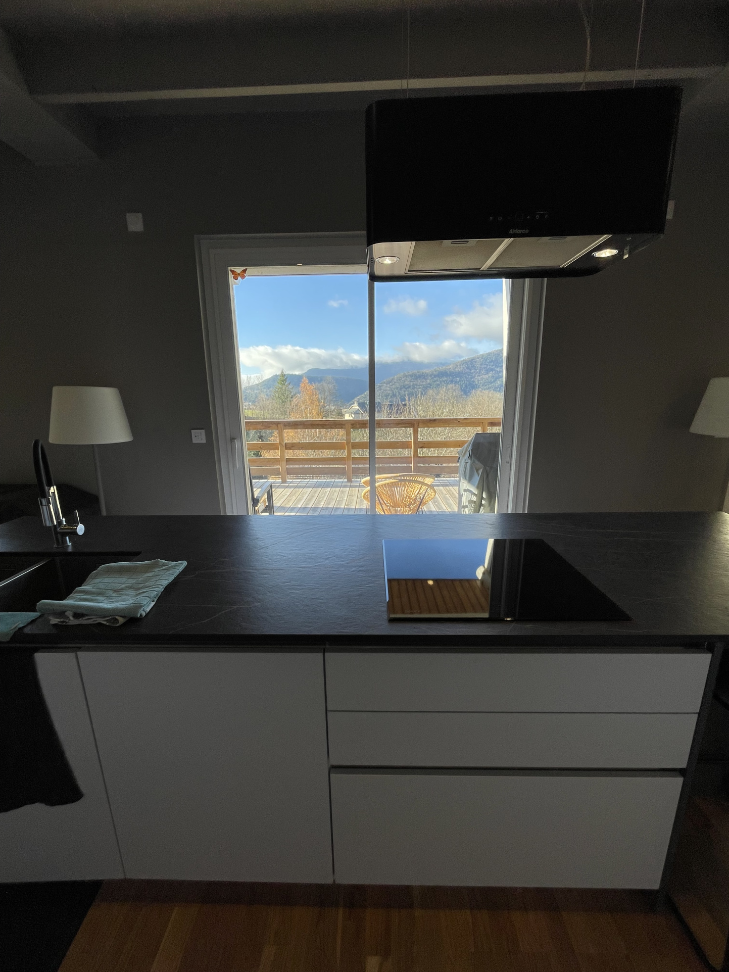 Cette maison orientée vers l’extérieur donne sur une grande terrasse-balcon exposée sud-ouest avec une vue panoramique. Le cadre est très agréable.