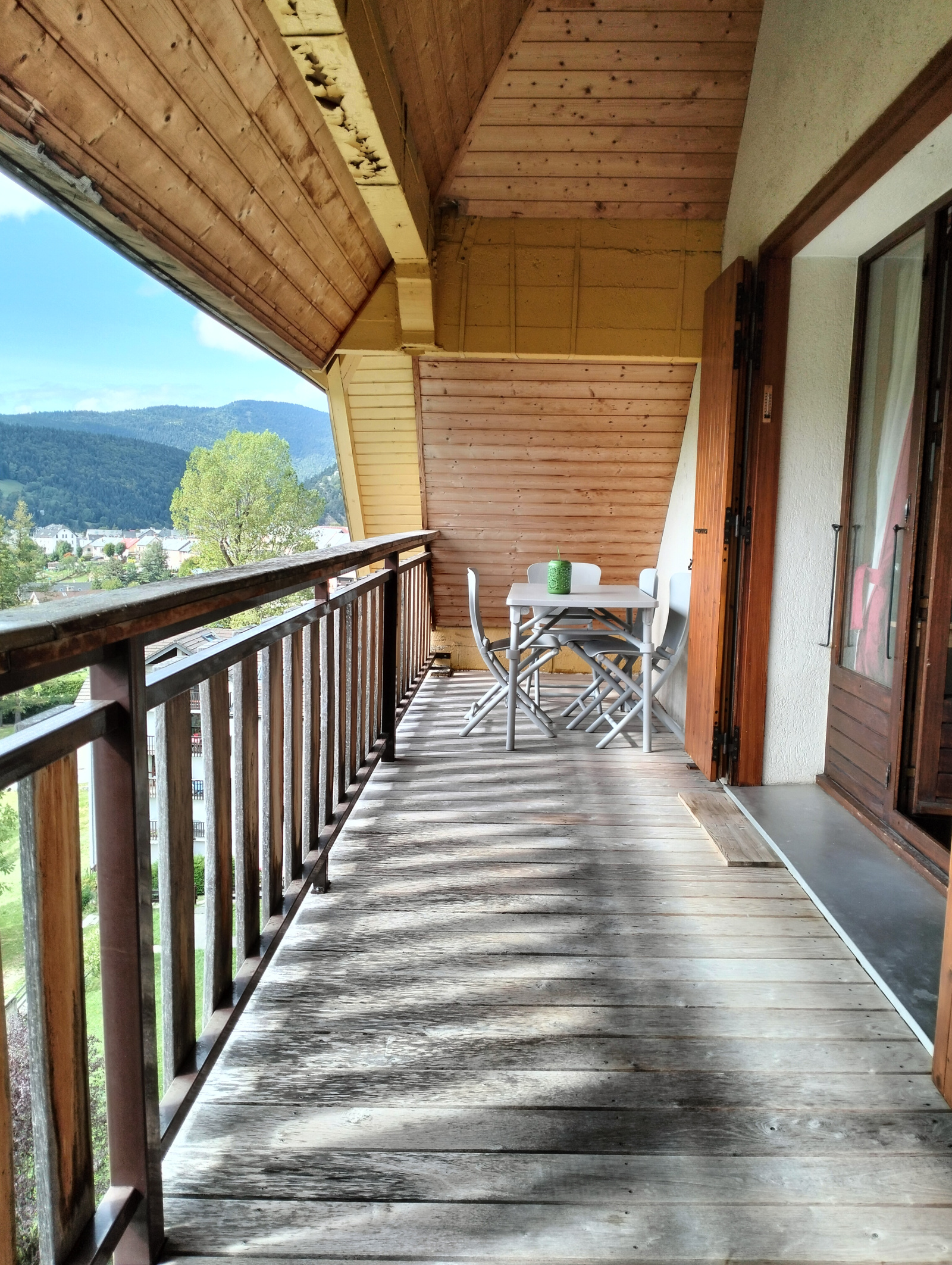 Il se compose d'une entrée, une chambre avec un grand lit, une salle d'eau, un toilette séparé, une cuisine équipée ouverte sur séjour (avec canapé lit gigogne) donnant sur grand balcon sud.