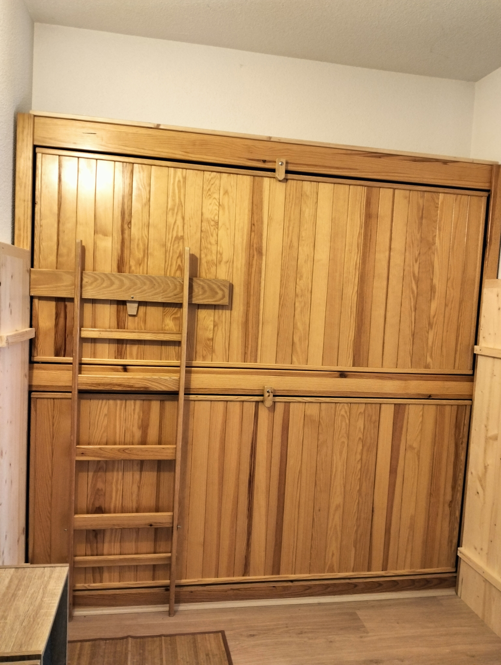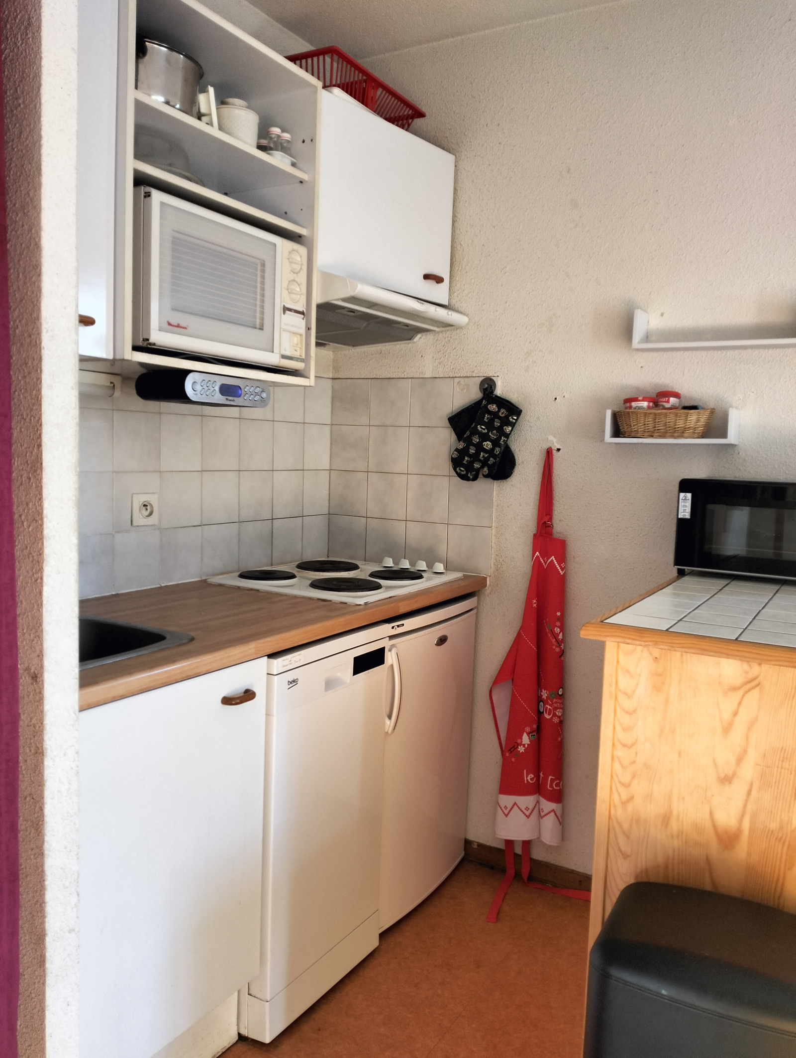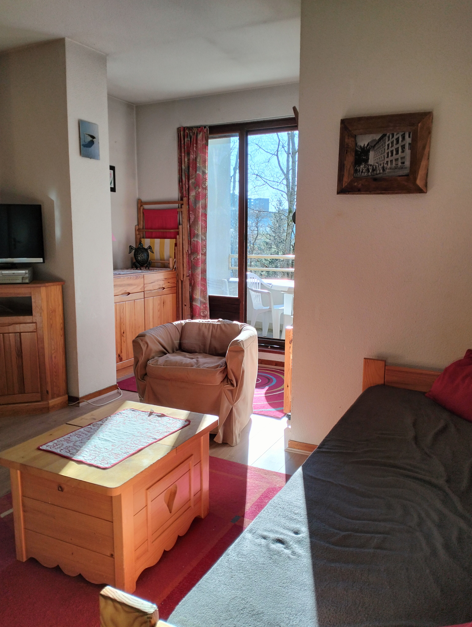 Il comprend une entrée et un coin nuit avec un lit superposé, une salle d'eau et un wc séparé, une chambre avec un grand lit donnant sur un balcon, une cuisine équipée ouverte sur un salon-séjour avec un canapé lit, donnant également sur un grand balcon exposé plein sud offrant une vue très agréable .