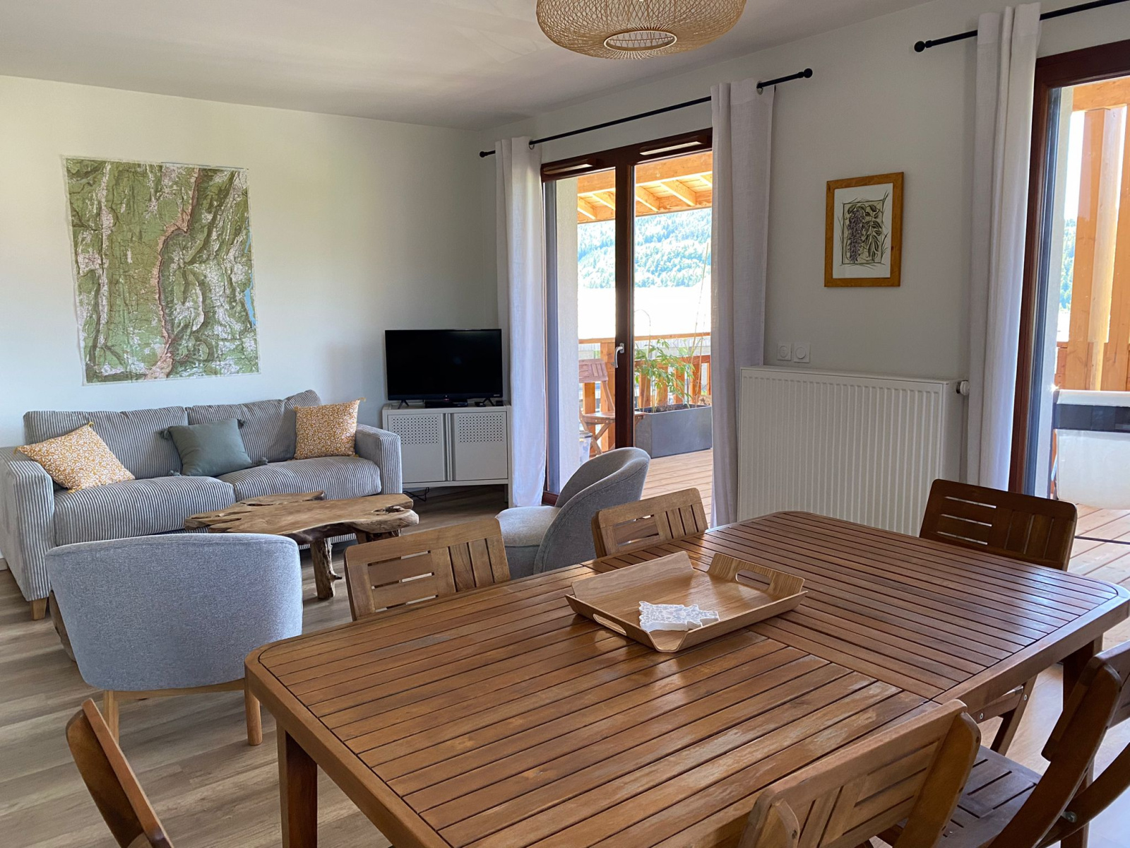 Ce bien de standing se compose de deux chambres (1 lit double et 1 lit superposé), une salle de bain, un WC séparé ainsi qu'une cuisine toute équipée ouverte sur la salle à manger/séjour lesquels donnent sur un balcon exposé Ouest.