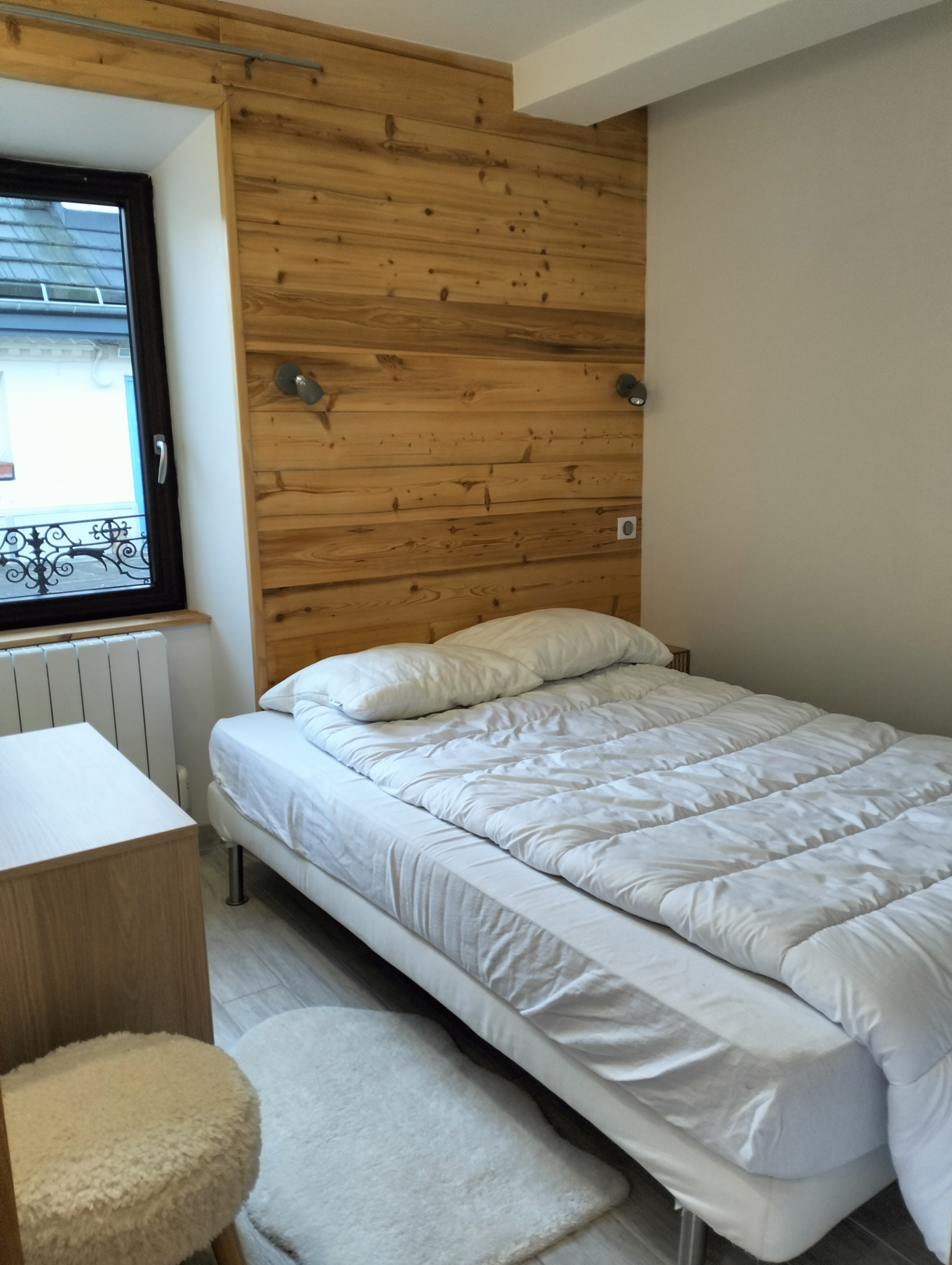 Il se compose d'une chambre avec un lit double, d'une seconde chambre avec deux lits superposés, d'une salle d'eau avec WC séparés, d'une cuisine équipée ouverte sur le salon (canapé convertible). L'appartement dispose d'une terrasse exposé Est.
