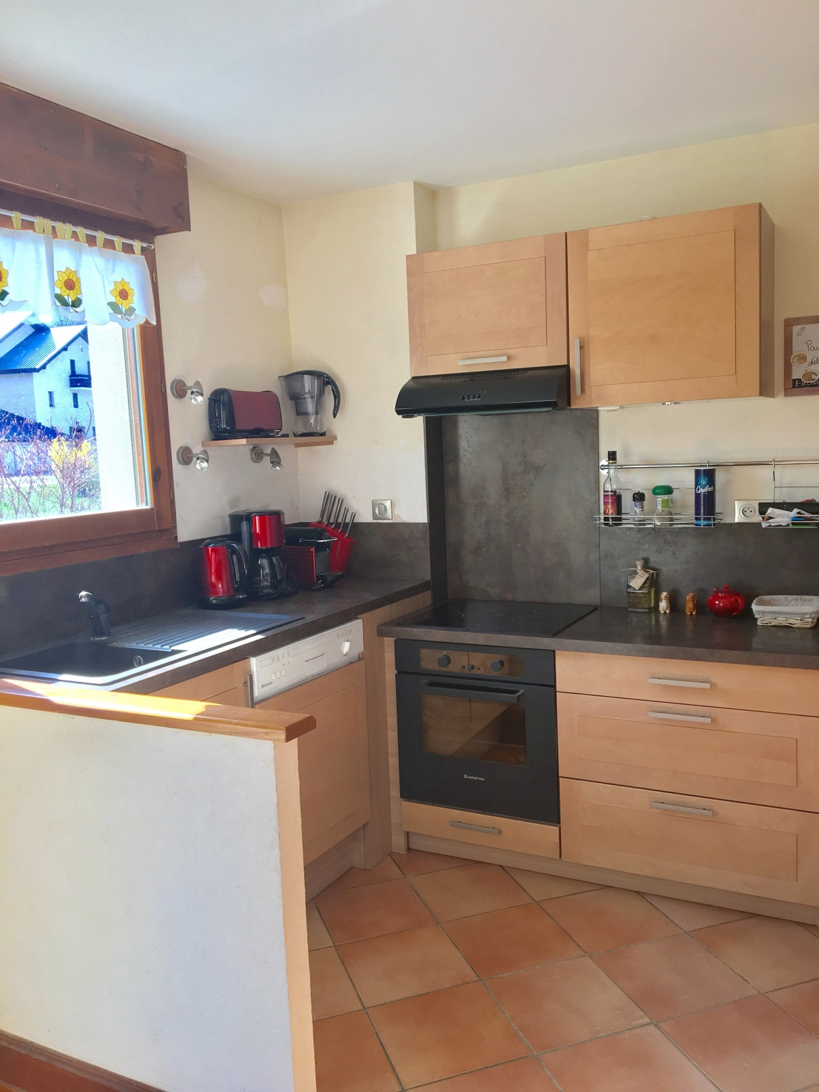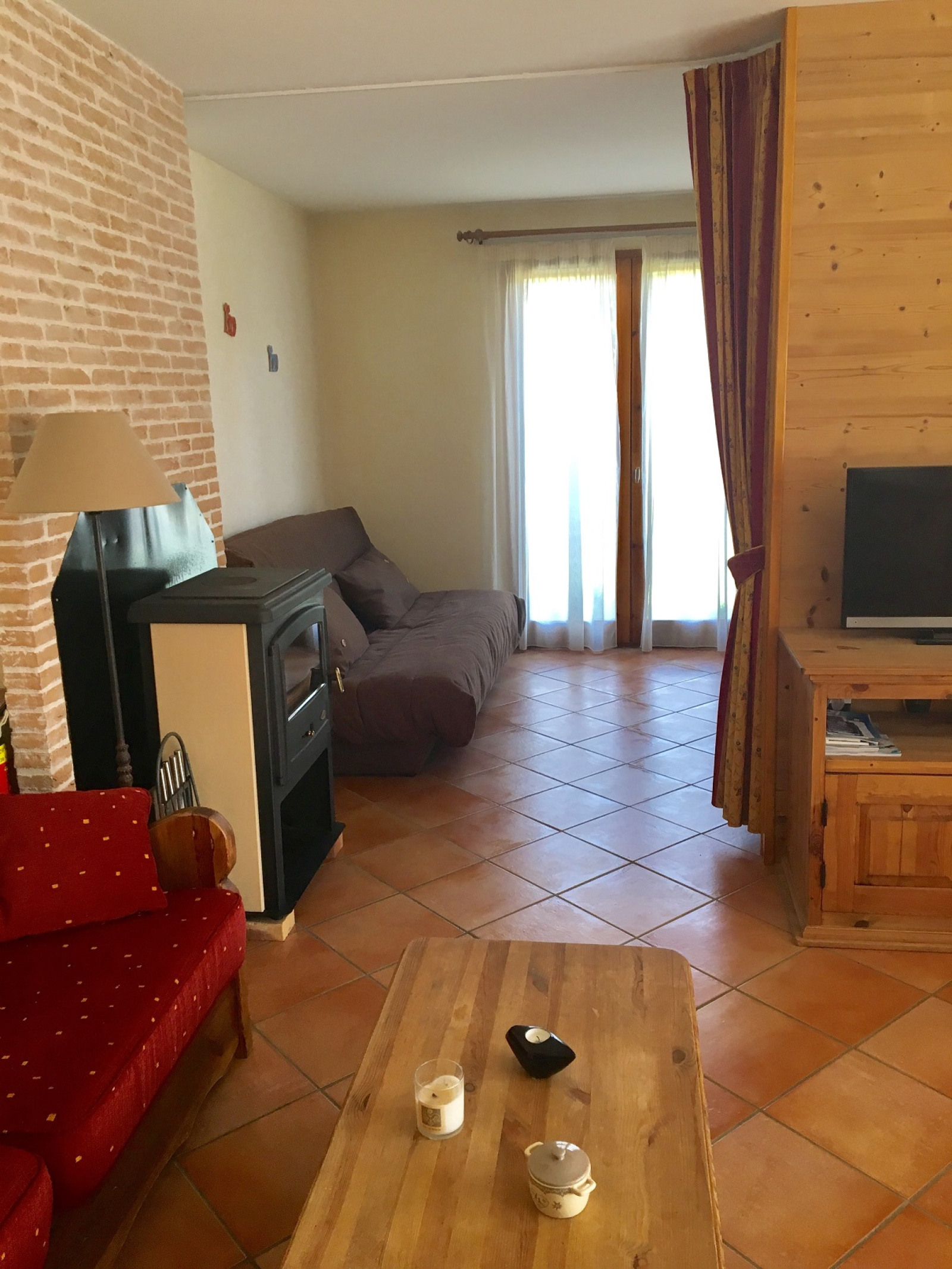 II comprend : une entrée avec cellier, une cuisine équipée ouverte sur vaste séjour / salle à manger donnant sur une terrasse et un petit jardin (exposition plein Sud), une 1er chambre avec un grand lit, une 2 ème chambre avec lits superposés et un canapé lit, une salle de bain avec WC séparé.