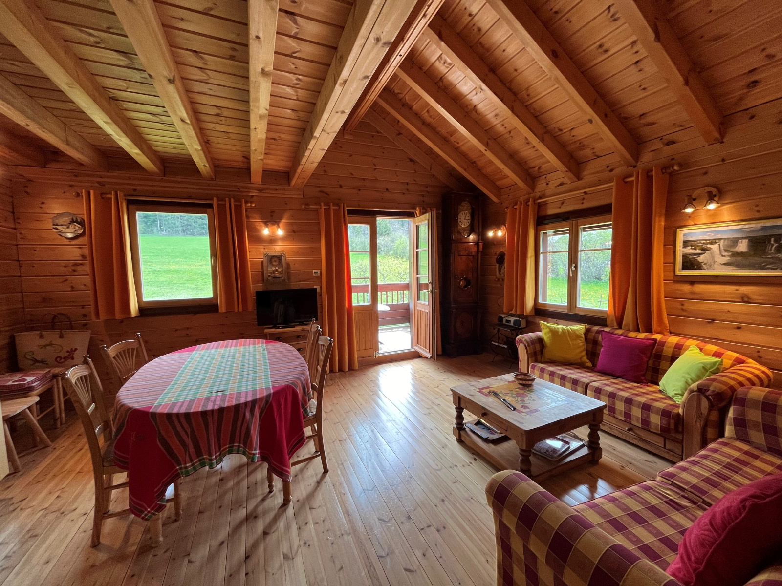 Une cuisine équipée et ouverte sur le séjour/ salle à manger donnant sur un balcon sud à la vue montagnes.