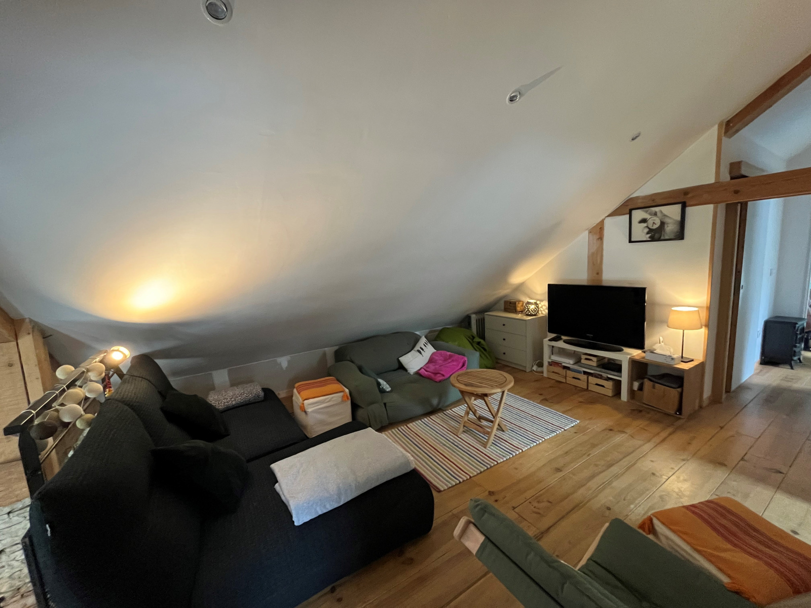 Ancienne ferme d'époque en lisière de forêt scindée en deux parties, cette maison edifiée en un grand appartement offre de trés beaux volumes et une perspective d'aménagement supplémentaire. Ce bien se compose d'une trés belle partie à vivre avec cuisine et arrière cuisine le tout donnant sur terrasse et terrain attenant OUEST, en étage on trouvera un espace détente, deux belles chambres, une salle de bain indépendante, une suite parentale avec douche, un wc independant.