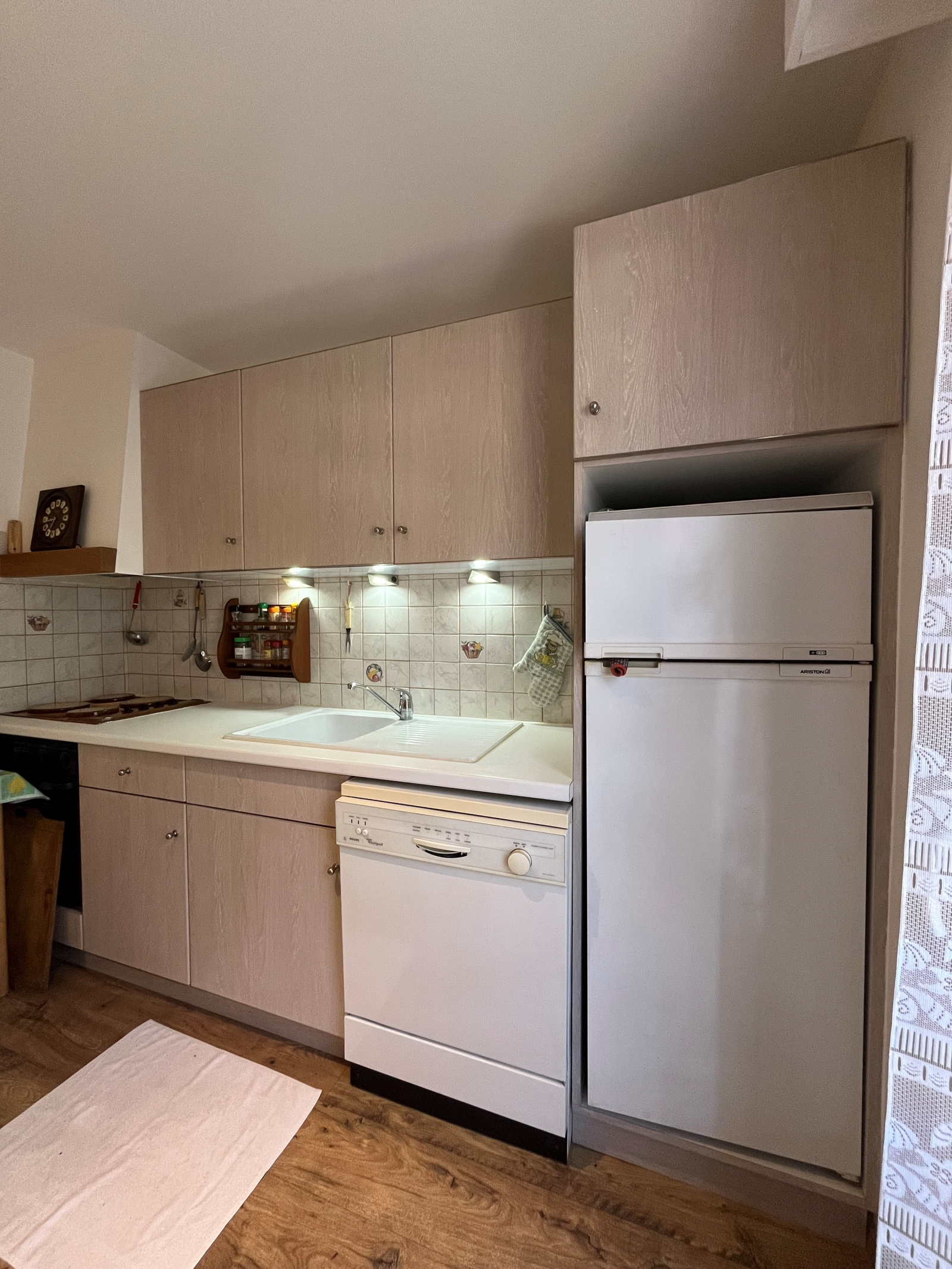 Une cave en dépendance, volumes généreux, à moins de 15 min à pieds du coeur du village, coproprièté de taille moyenne, baies vitrées neuves.