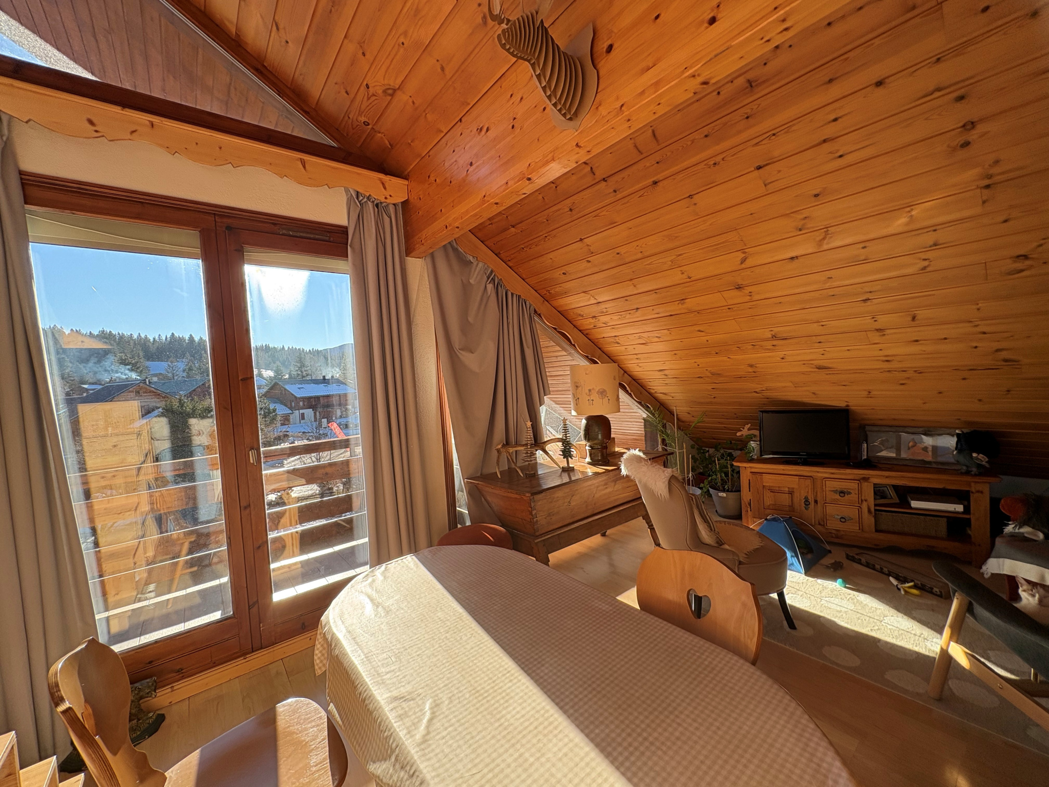 Bien en parfait état, vendu avec une cave et un casier à skis, situé entre les Rambins et le centre village, coproprièté entretenue.