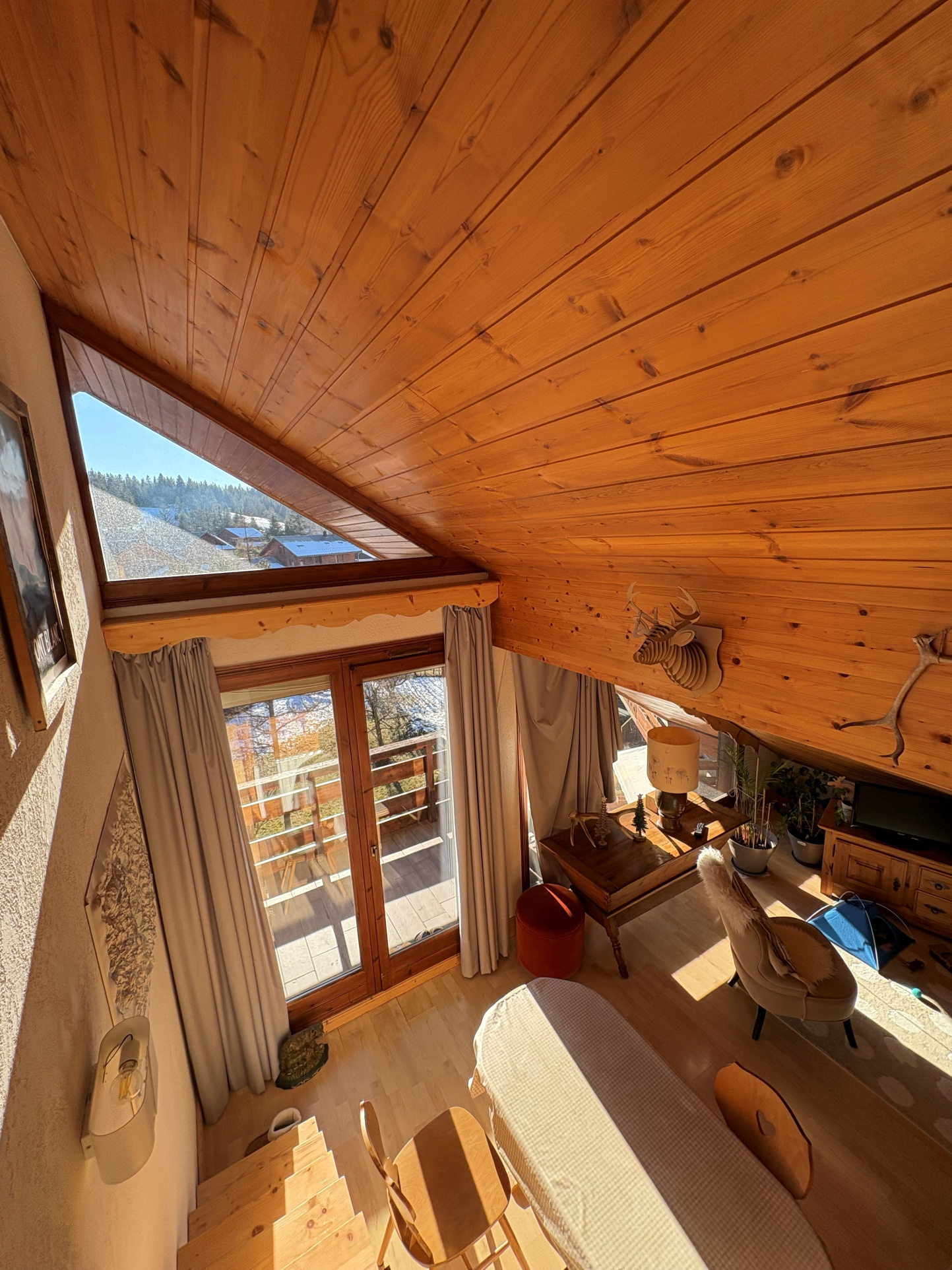 Sur la commune de Corrençon, ce charmant appartement se compose : d'une entrée, une salle de bains avec WC, une cuisine ouverte sur coin salle à manger et séjour donnant sur balcon SUD à la vue montagnes, une mezzanine avec espace de rangements et nuit, une grande chambre.